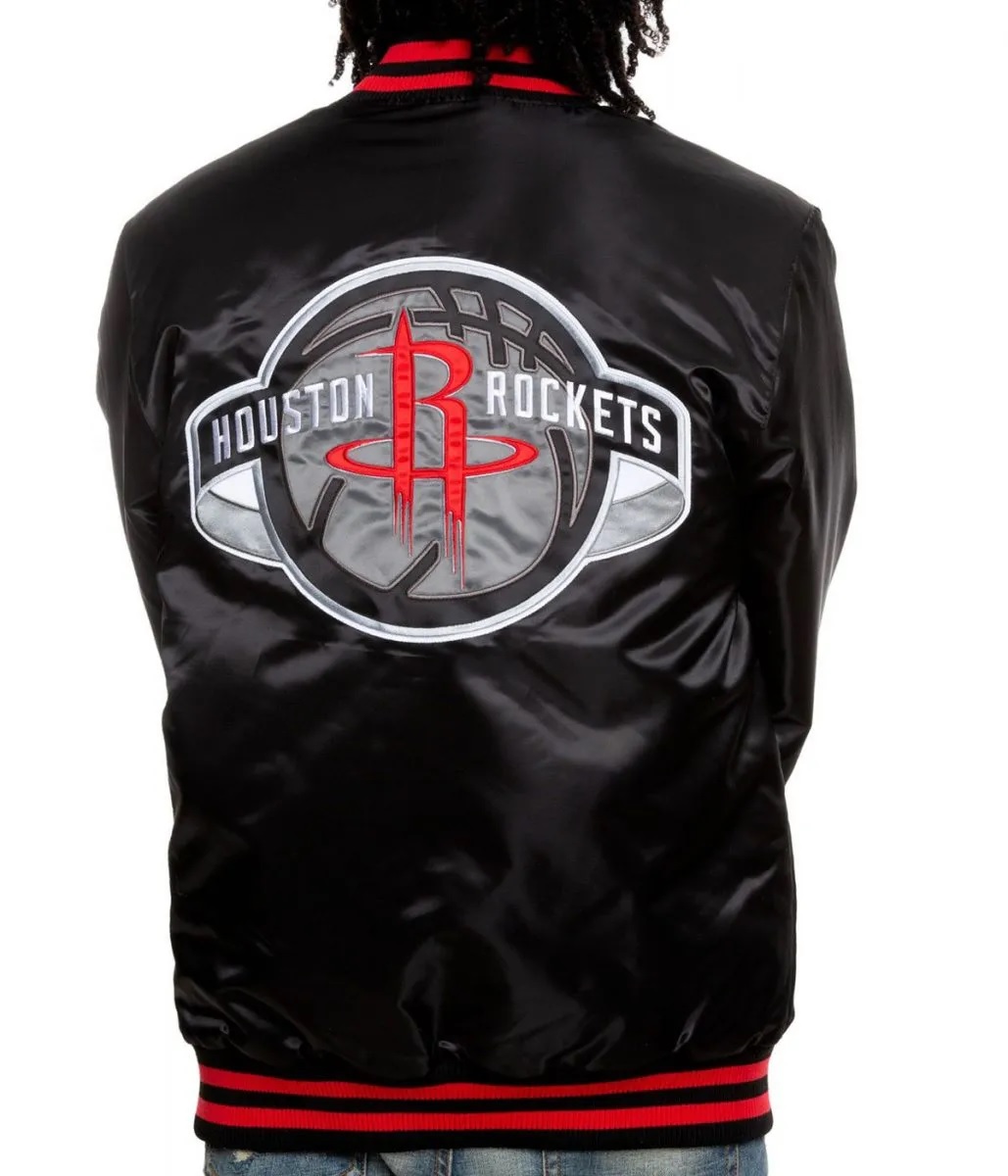 Bomber Houston Rockets Satin Black Jacket