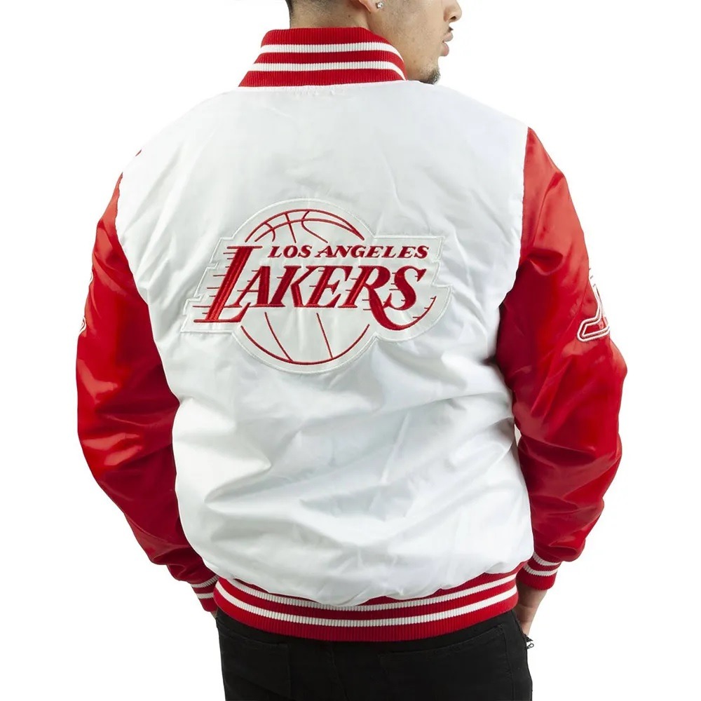 Los Angeles Lakers White And Red Satin Jacket