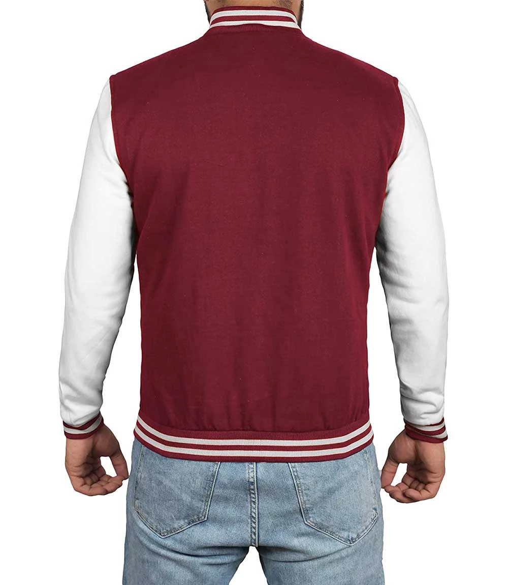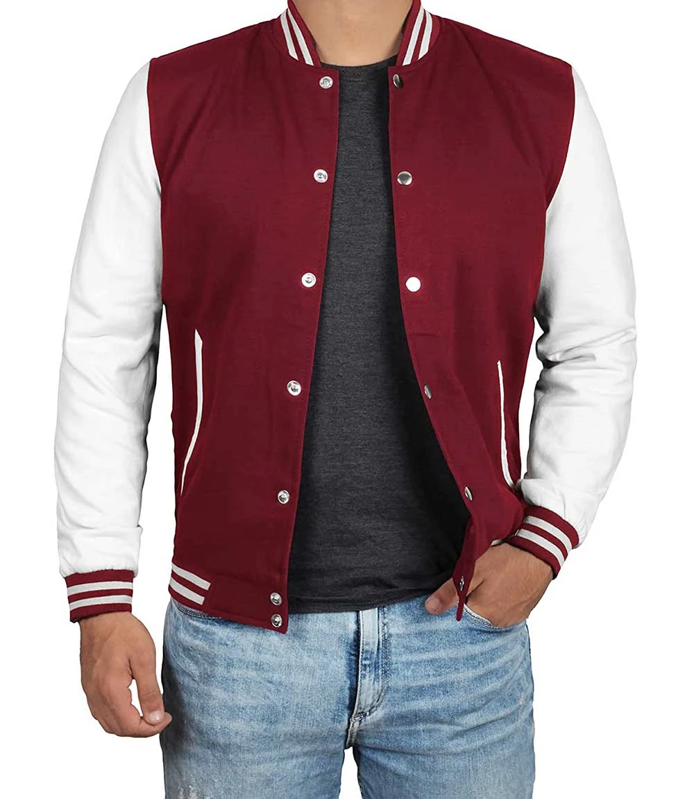 Men’s Maroon and White Varsity Jacket – Letterman Bomber Style