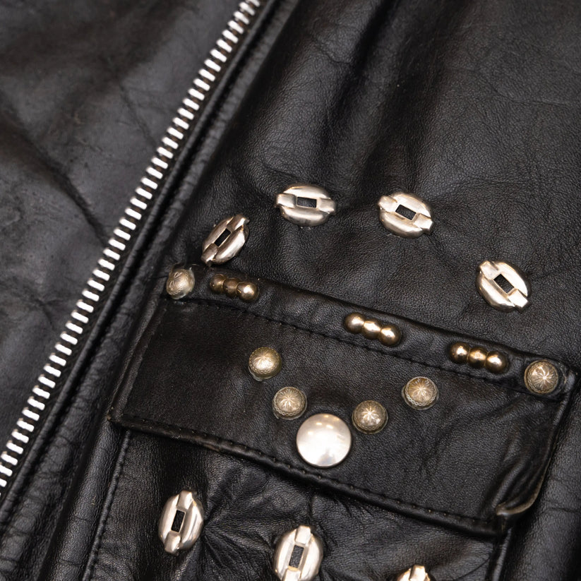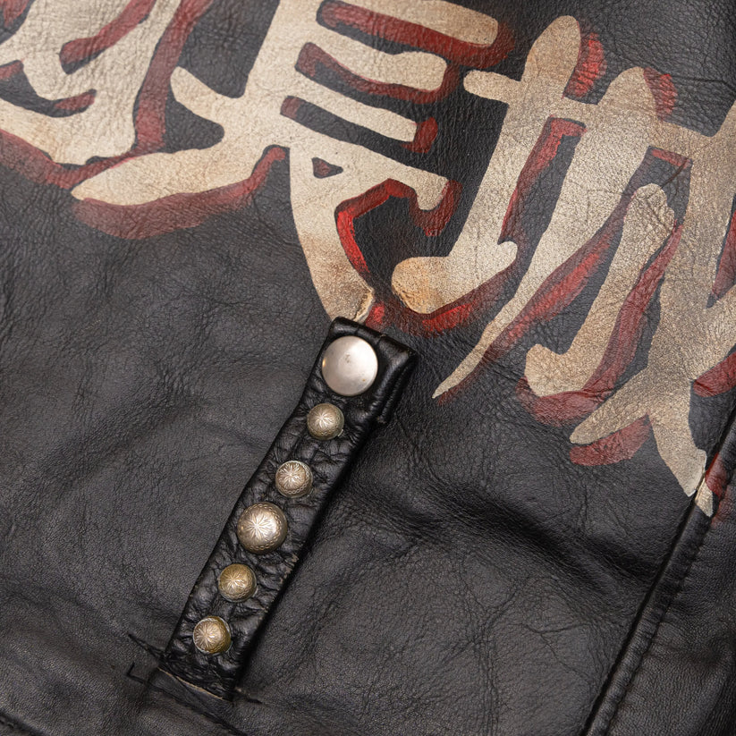 MOTOR CITY BAT SKULL PAINTED LEATHER JACKET